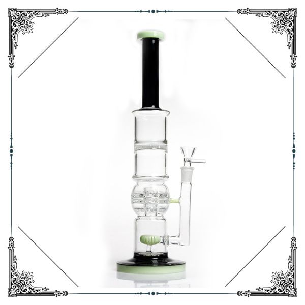 Straight Tube 14 Inches Glass Bong With Honeycomb Percolator Bongs Big Smoking Water Pipes