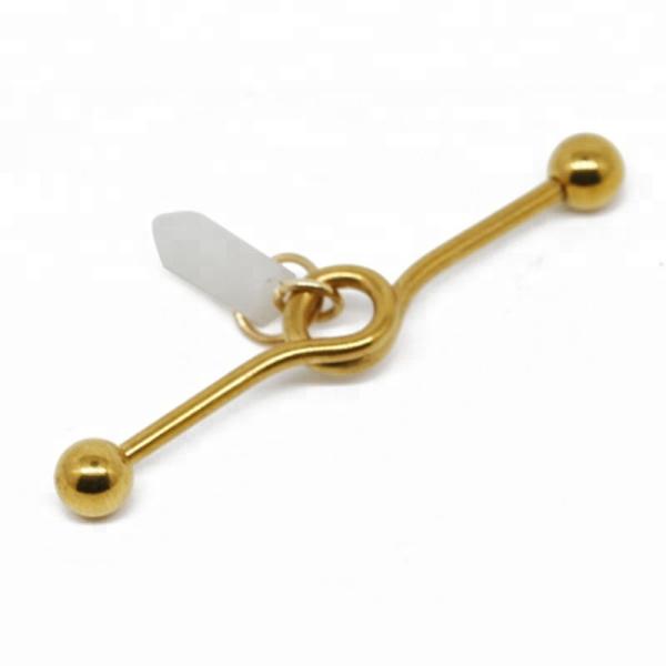 Piercing body jewelry type | surgical steel industrial barbell with milky white stone dangle |