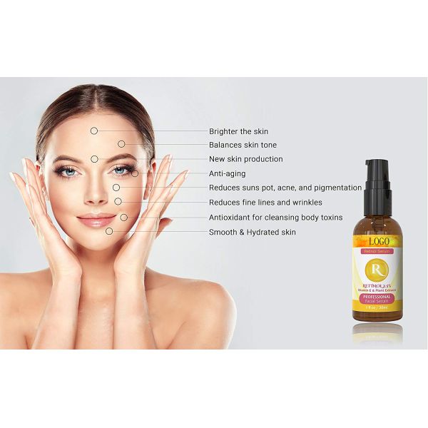 Private Brand Organic Anti-Aging Retinol Serum 2.5% with Hyaluronic Acid, Vitamin E & C