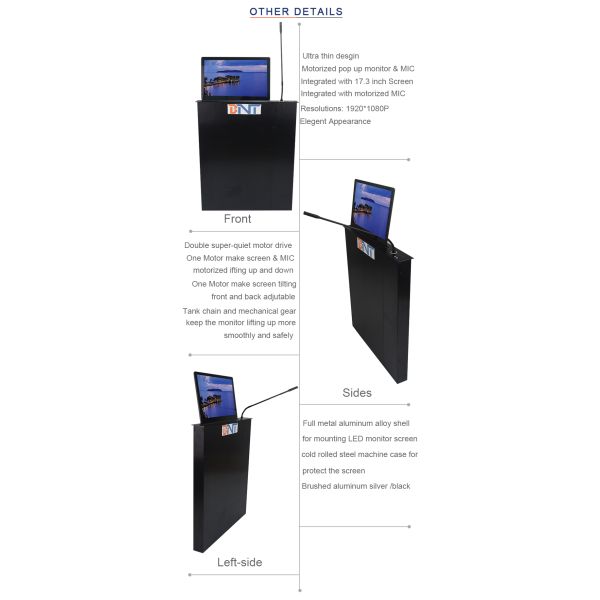Boente 17.3 Inch Screen Table Motorized Computer Monitor Mechanism With Motorized MIC BLM-17.3M
