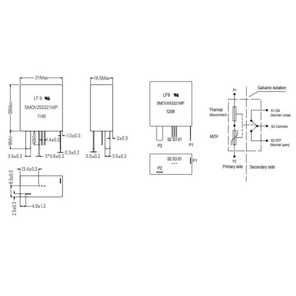 Average power dissipation of transients should not exceed 1.5 watts Same ratings and specifications apply to Non Isolated Monitored Switch alternative design. Replace "M" with "N" in the part number. e.g.: SMOV25S111NP. Refer to Part Number System at the end of this document.