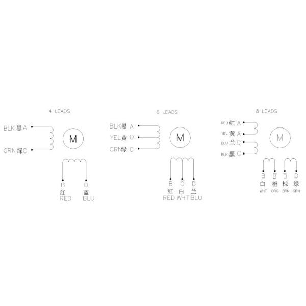Model No. | Motor Length | Current /Phase | Resistance /Phase | Inductance /Phase | Holding Torque | # of Leads | Detent Torque | Rotor Inertia | Mass |