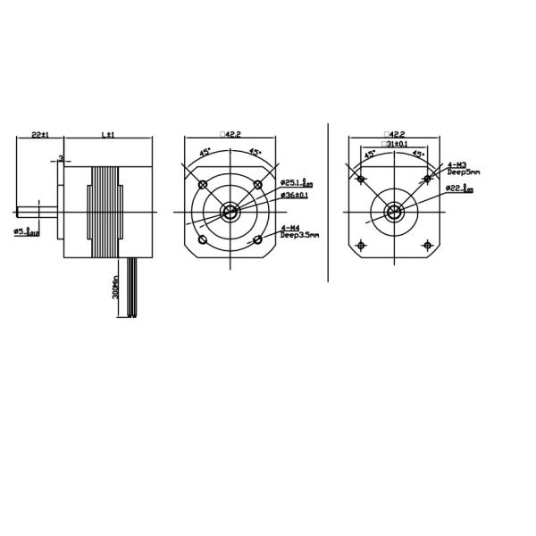 4. Dimensions Of 42mm Brushless DC Motor: (Unit=mm)