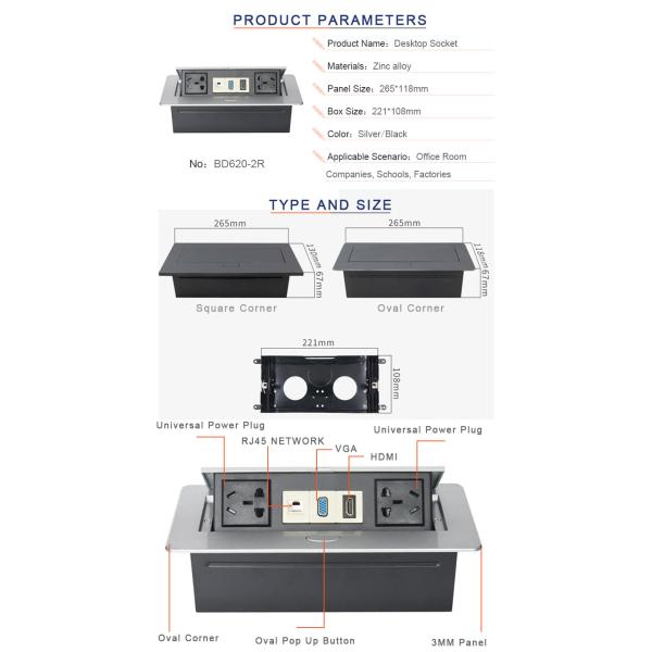 Boente Zinc Alloy 3Mm Surface Thickness Furniture Pop Up Outlet Connector Oval Button With 10~16A Rated Current BD610-2R