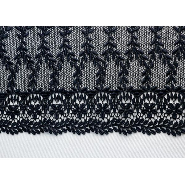 Navy Floral Embroidered Nylon Mesh Lace Trim With Guipure Ribbon Azo Free