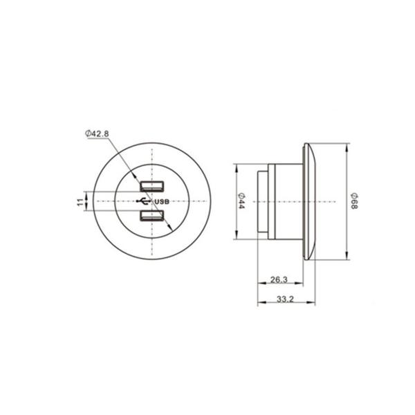 Blue Light Usb Table Hub , USB Electrical Outlet Dual Usb Ports Grommet