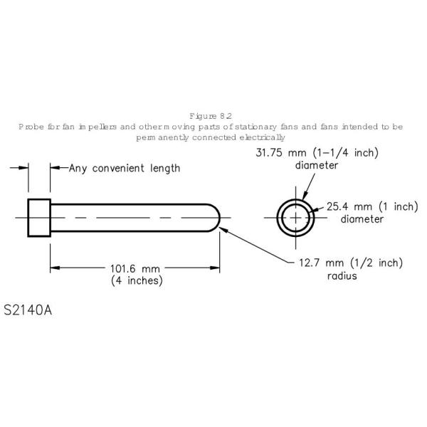 Hazardous moving part probe is conforms to the standards of UL507 figure 8.1 (PA160B), UL1278 figure 9.1 (PA160). It is applied to test the accessibility to hazardous moving parts such as access to fan blades through a fan finger guard. The handle is made of nylon, the finger is made by stainless steel.