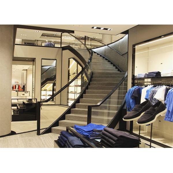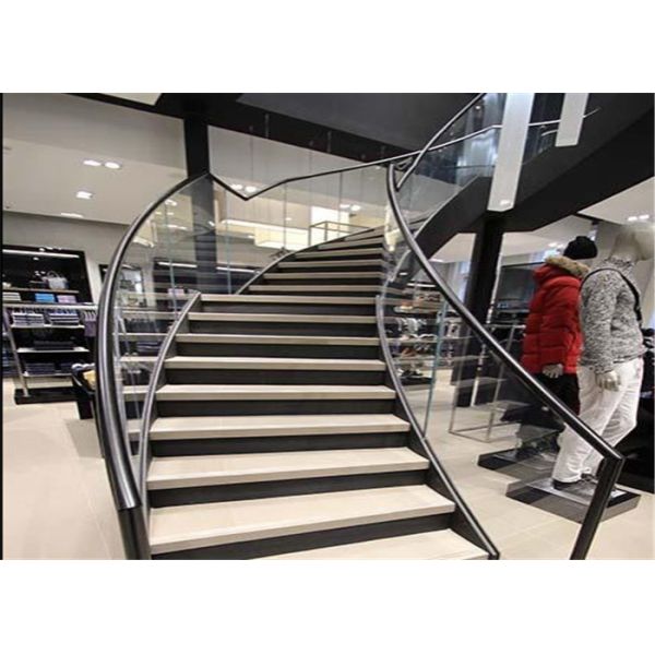 Commercial arc curved stainless steel staircase with tempered glass railing