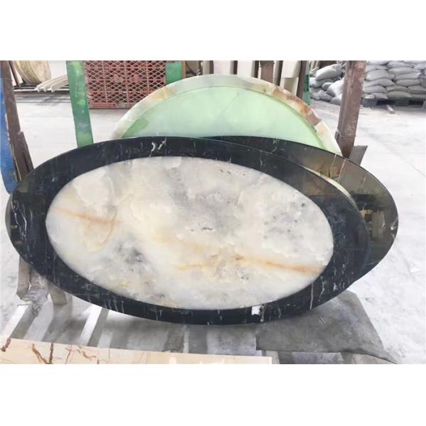 Exquisite Light Green Onyx Coffee Tea Table Top is amazing luxury living room marble coffee table top. Oval design with marble onyx inlaid together, It looks more special. Their styles can be round, rectangel, square , oval marble table top. You can choose any favorite marble table top from our list. It can be also used as restaurant table, tea table , coffee table, dinning table,work table... . Our advantages is wide color range, different shapes and styles, wholesale price, factory fabricated. Outstanding workmanship and quality material, our marble table tops are widely used in market. Please feel free to contact us if you need marble table tops. Welcome to visit us!