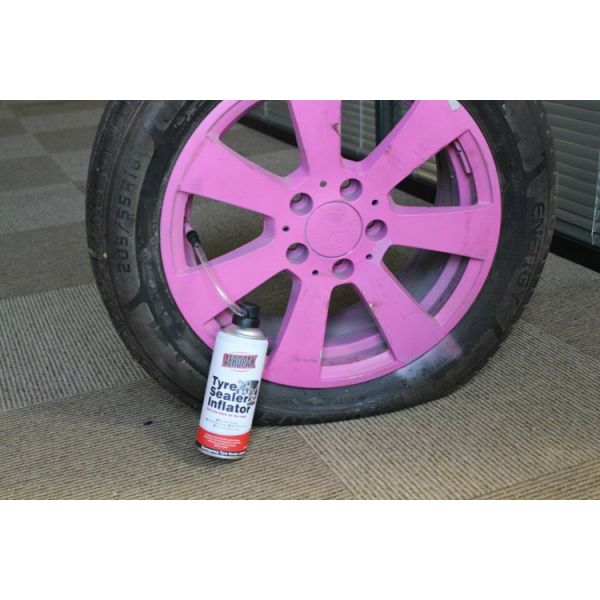 Aeropak Tire Sealer & Inflator is designed to quickly seek-out and effectively seal most normal punctures and slow leaks. It is 100% applicable to breach within 6mm on tubeless rubber tyres of cars, motorcycles, electrical bicycles. No jack nor tyre-undo is needed. One step procedure of tyre bumping and repairing is finished in seconds. It can also be filled into new tyres to prevent unexpected leakage.Non-toxic and odorless. No corrosion and no damage to the tire.