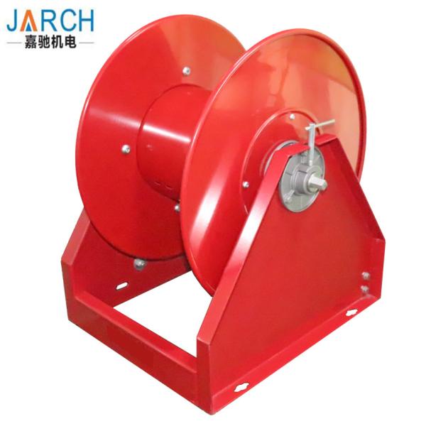 | JARCH's Series 30000 hose reels are designed for rugged, heavy duty applications requiring long lengths of hose and large storage capacity. All-bolted unitized construction with no welds to fatigue, full flow swivel and heavy gauge steel frame, spool. |