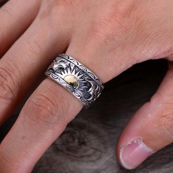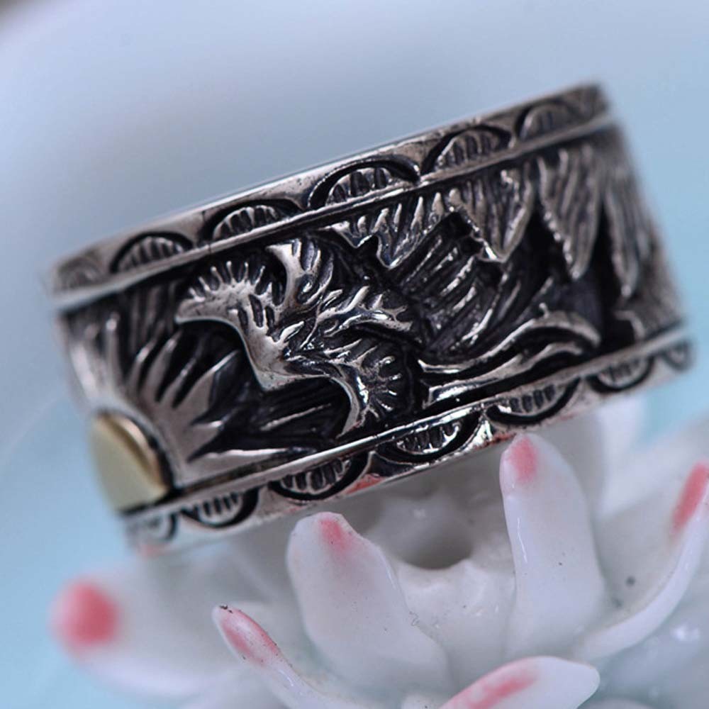 Mens 925 Sterling Silver Band Ring Antique Engraving Silver Ring (054020)