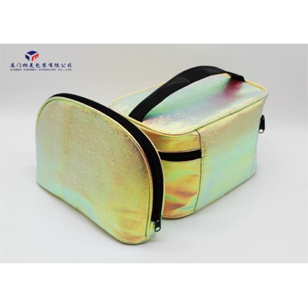 Leather Cosmetic Bag Flashing Gold Leather Customized Lady Handbag