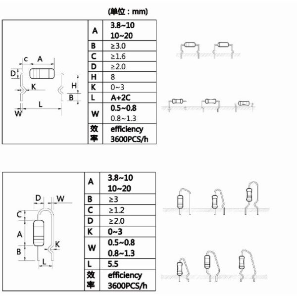 | Suitable for | taped resistor/diode axial components. Lead diameter: 0.5-0.8MM or 1.0-1.3MM Note: Two lead size can not use same machine |