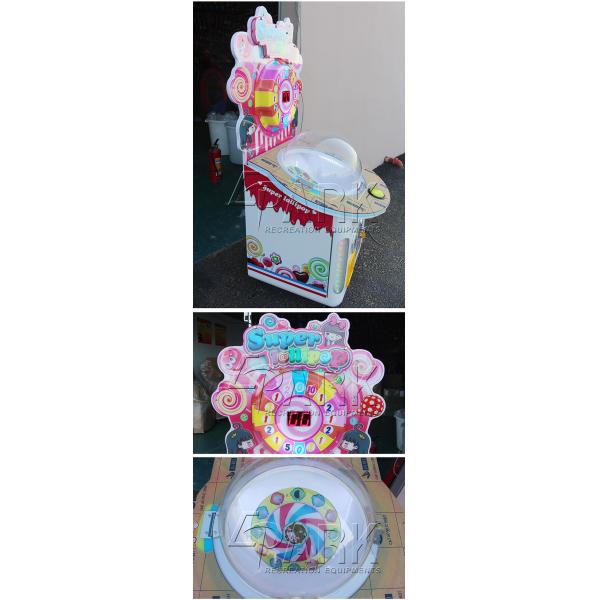 | how to play | 1.Insert coins, press the button and the light on the turntable begin to running 2.Press button,lights stop running,the lighted number is the winning candy number 3.Candy out will according to the number, and take the candies. |