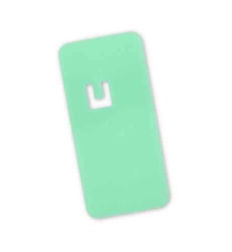This custom cut adhesive film secures the rear panel to the case of an iPhone 8.