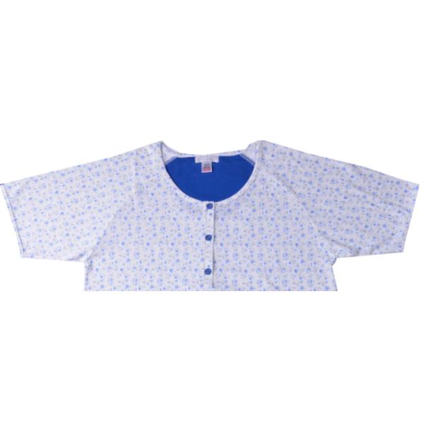 Ladies Cotton Jersey Blue/Floral Printed Raglan Sleeve Round Neck Nightdress Allover Print Button Placket
