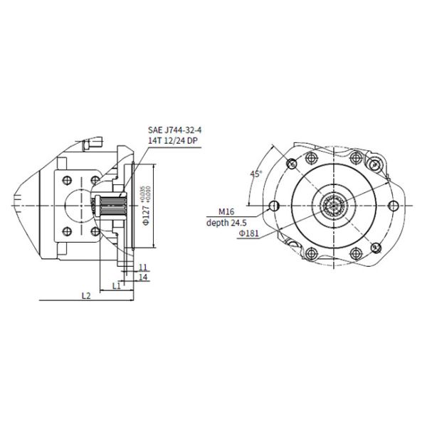 SAE C 127-2 + SAE J744-32-4 14T 12/24DP