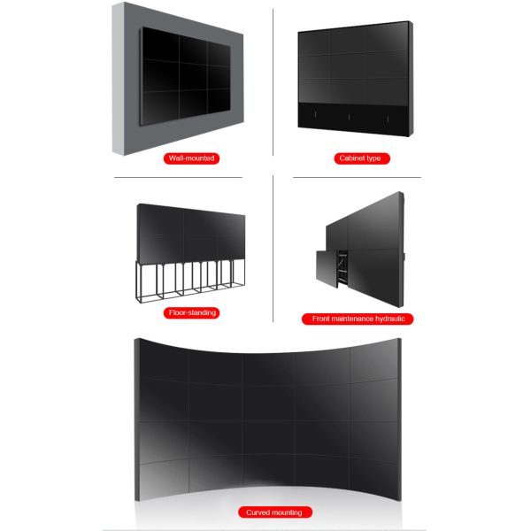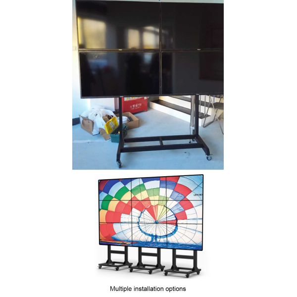 We have full range of LCD video wall from 46inch to 65inch, in various narrow bezel and different high brightness, installation can be on the wall or with a floorstanding bracket or on a moving stand with wheels, so you can move it anywhere needed, for signal input, we can use signal enhancement connector to avoid any singal weak. Front maintenance one-button push bracket and IR touch frame on option.