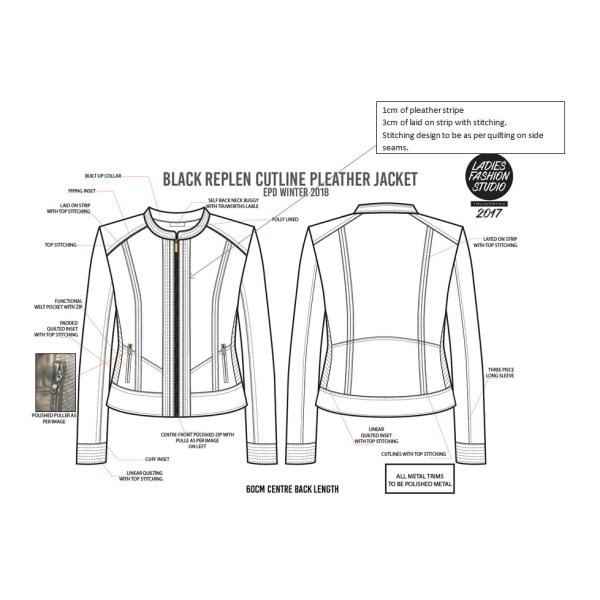- To have 3cm wide cutline to the CF placket and edge stitching at either side of the center zip.