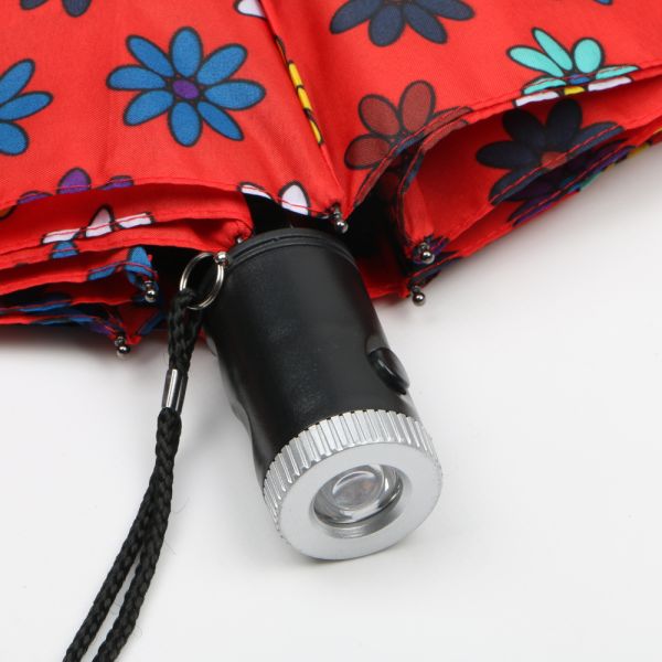 | Product name | led lighted rain handle led light three fold umbrella with print | Fabric material | floral fabric |