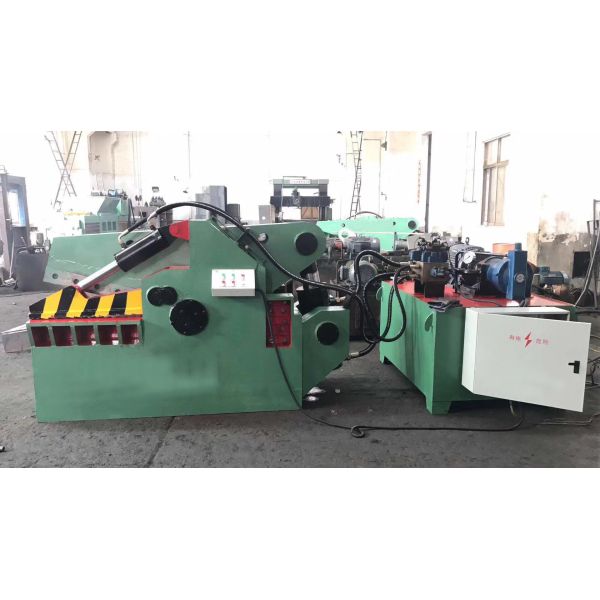 Steel shearing machine applies to scrap metal (iron, steel, steel pipe, etc.) cold shearing of different section forms. This machine is equipped with fast unit, and the shearing speed is doubled than before, the power is saved by 50%.