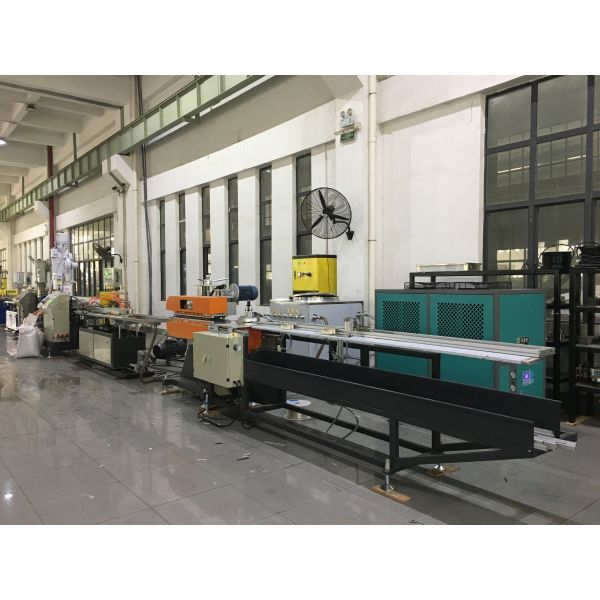 This production line is composed screw loader,conical twin-screw extruder Or Single screw extruder,mould,vacuum calibration table, haul-off machine, cutting machine and stacker.