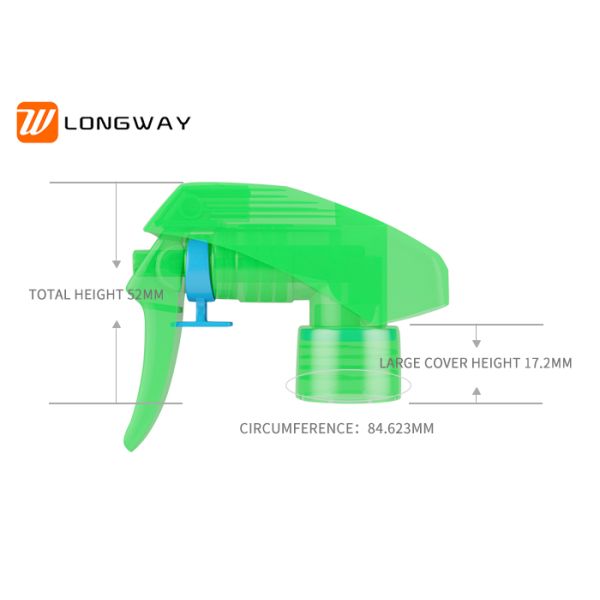 1. The size for this Trigger Pump is 24/410, with color of blue. We can also customize the bottle in other sizes and colors for you.