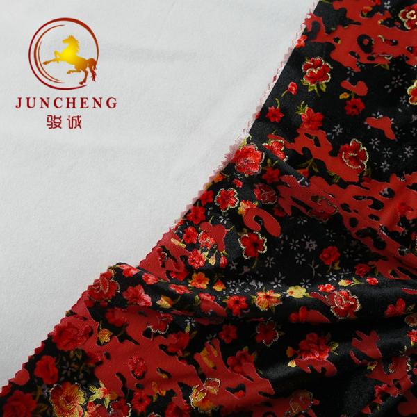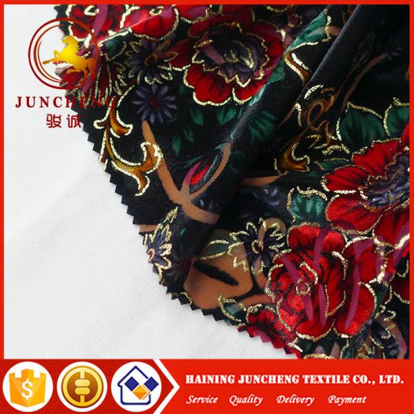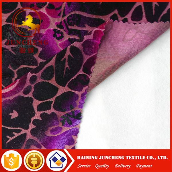 | MOQ: | 1000m/color hot sale burnout printed KS silk velvet fabric for dresses |