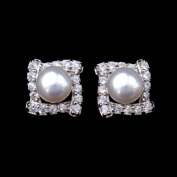 Great Plated 925 Sterling Silver Sweet Love Heart Freshwater Pearl Earrings