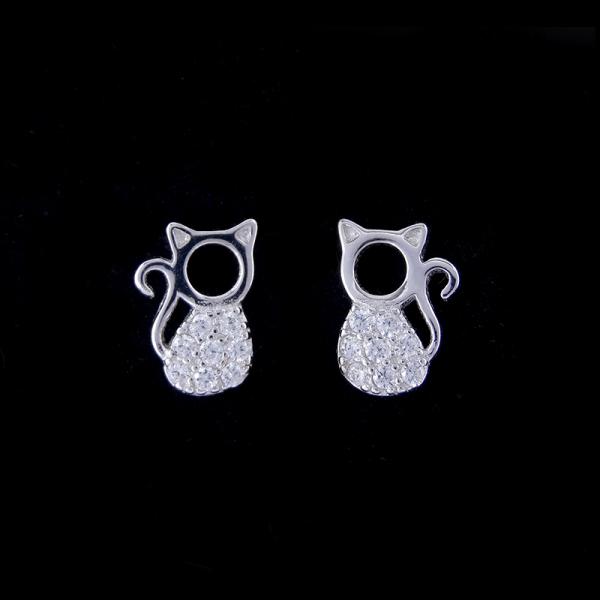 Sterling Silver 925 Jewelry Earring Hollow Cat Shaped Minimalist CZ Earrings