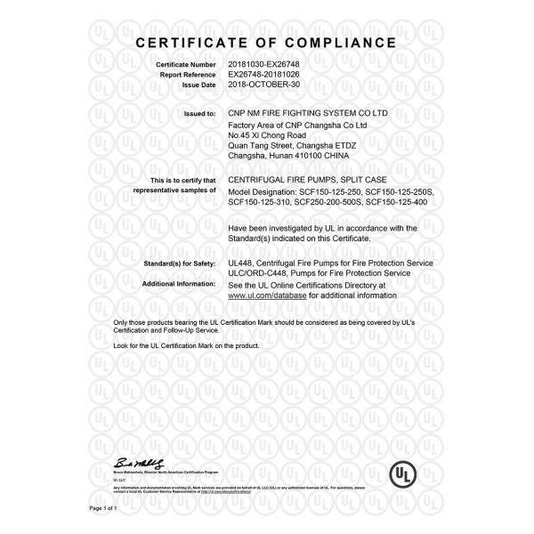 CNP NMFIRE End suction fire pump is the perfect solution for small capacity fire applications. Back pull-out design end suction fire pump, allows the complete rotating element to be removed for servicing without disconnecting pipe work. If a spacer coupling is fitted then driver does not have to be moved too. Simplicity of design ensures long efficient unit life, reduced maintenance costs and minimum power consumption.