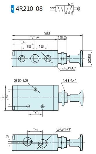 | 4R: 5/2 way hand draw valve 3R: 3/2 way hand draw valve | 1: 100 Series 2: 200 Series 3: 300 Series | 10: Single head Double Position | Port size 06: G1/8" 08: G1/4" 10: G3/8" |
