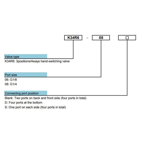 K34R6-8B Hand-Switching Valve G1/4 Aluminum alloy Silver 3 positions/4 ways