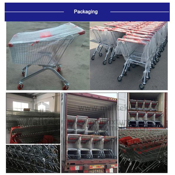 The classic design of the European shopping cart make European supermarket trolley fashional and beautiful. European supermarket cart has no storage options on the chassis, which can help to prevent theft.European shopping cart has original wear-resistant with low maintenance wheels, which make floor clear. E uropean shopping cart has coin lock, which will ruduce the stocktaking differences.