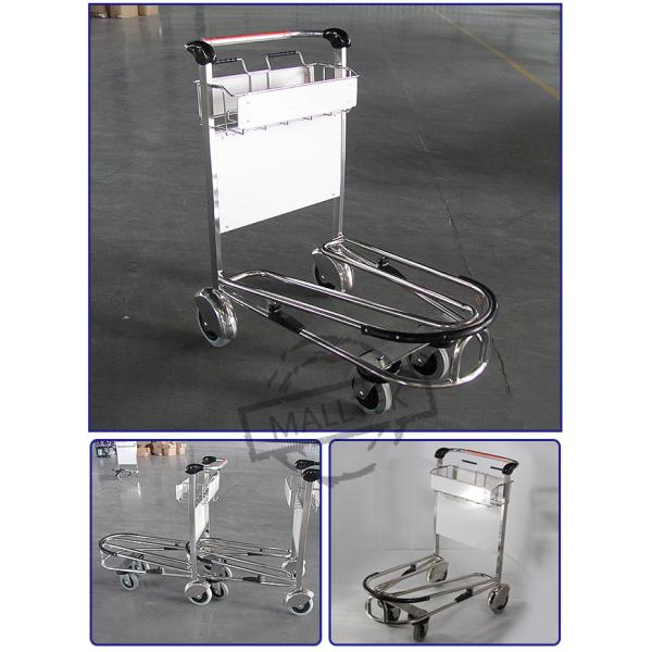 Stainless airport trolley use stainless material for heavy duty suitcase .The elegant curved design make airport baggage trolley looks bright and beautiful, so airport trolley can keep clear longer. High-quality processing with well-thought-out detailed solutions will satisfy customers' most request. Generous advertising spaces give supplier more opportunity to promote yourself.The automatic hand brake will make customers'hands free when customers want to do other things