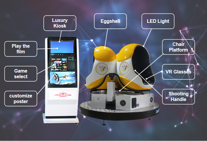 the 360° movies. 9D VR Cinema connects with the motion seats and bring you a totally different
