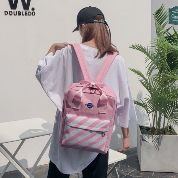 Korean embroidery star stripes handheld backpack personality of students schoolbag