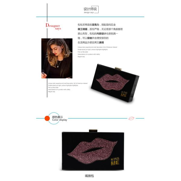 Fashion ladies women evening handmade acrylic kiss me clutch bag
