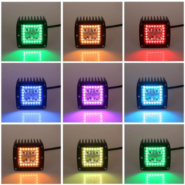. 18 watts 6 CREE LEDs Pods with RGB halo 10-30v DC