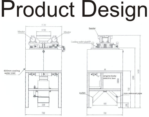 The material also have flow arrangement according the the material dimension. The part flow system can be set on feeder or belt to confirm the material pass the strongest magnetic material to confirm the best purity.