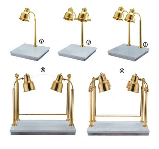 Gilded Food Warmer Lamp Station Buffet Equipment Marble Bottom Double Lamp