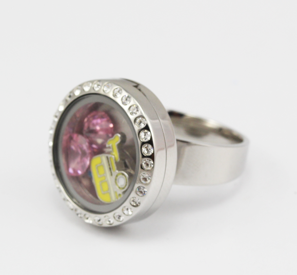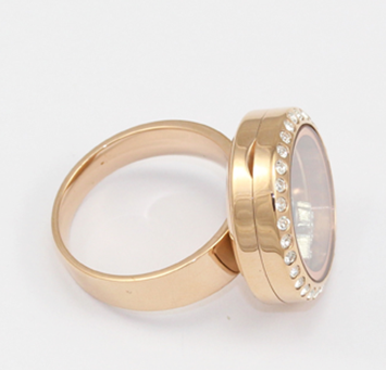 316L Stainless Steel Floating Charm Memory Living Locket Ring TGLR011, size can be customized from #5-#12