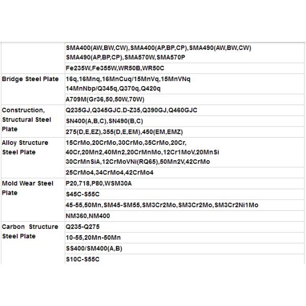 | Standard | ASTM ;EN10025;DIN17100;DIN17102;EN10113;Bs4360;ISO4590-2;ISO630 |