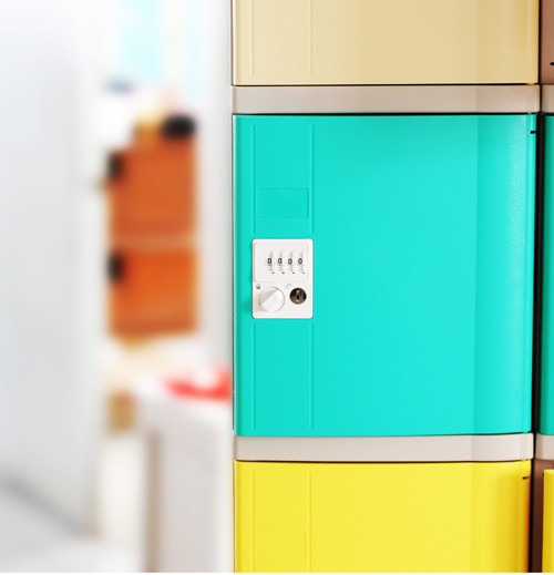 product name:4 tier red/orange/bule Plastic abs lockers with clover lock for gym