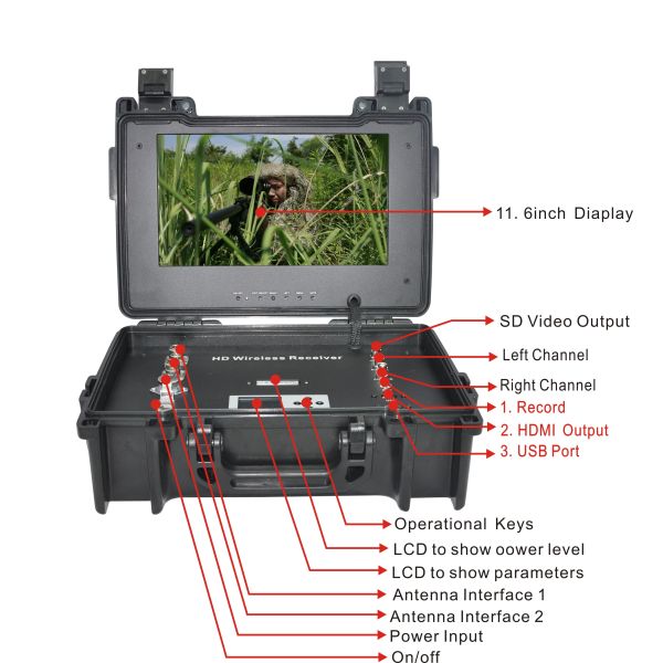 Mini 11.6 inch 1 Channel COFDM wireless video receiver with large LCD display