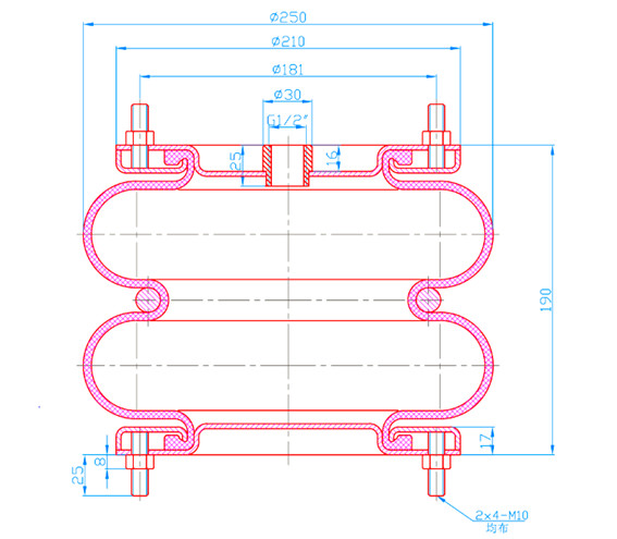 Guomat 250190CY-2 Industrial Double Convoluted Air Spring Specifications