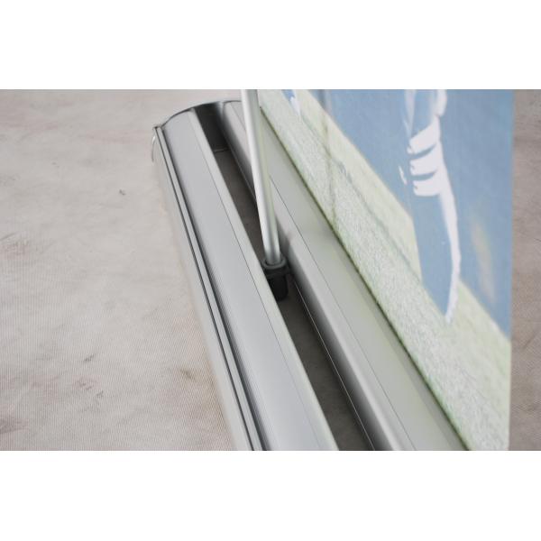 Our aluminum retractable roll up banner stand are high quality roll up banner stands that come in various sizes. They will arrive completely assembled and in their own oxford bag, ready for storage, transport or immediate display. Your display is printed full color on pvc vinyl film that will give you exquisite artwork reproduction and color contrast. It is printed on one side or both sides that will last years and is easy to assemble at your office or trade show.