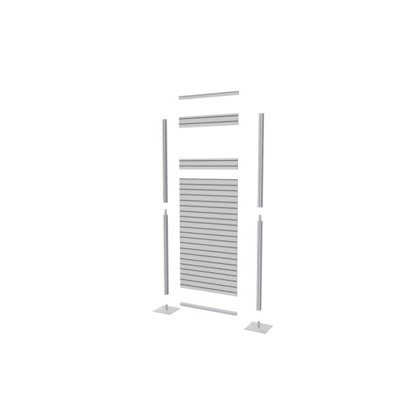 Aluminum Portable slatwall, as a free standing slatwall display, it is light weighted, nice looking and durable. Easy to set up and display any products on shelves or with slat wall. Fabric panel provide extra advertising space.