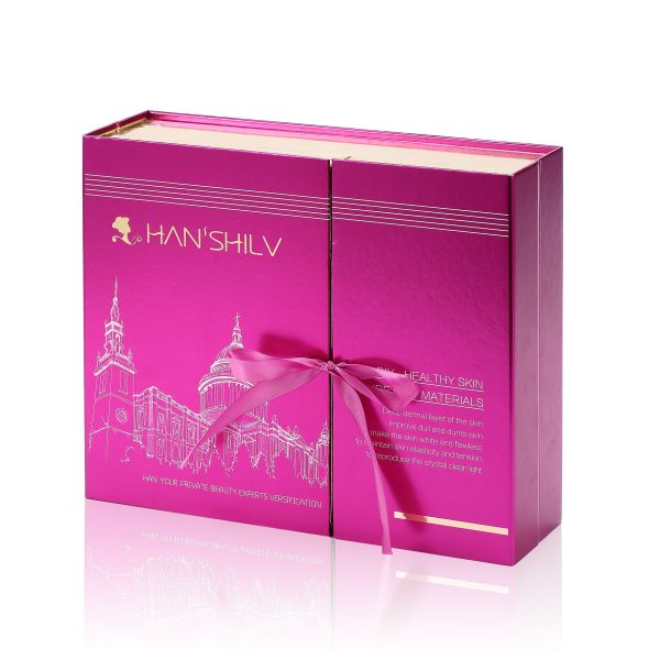 Silver Color Hot Stamping Craft Beauty Cosmetic Box Packaging with Silk Ribbon